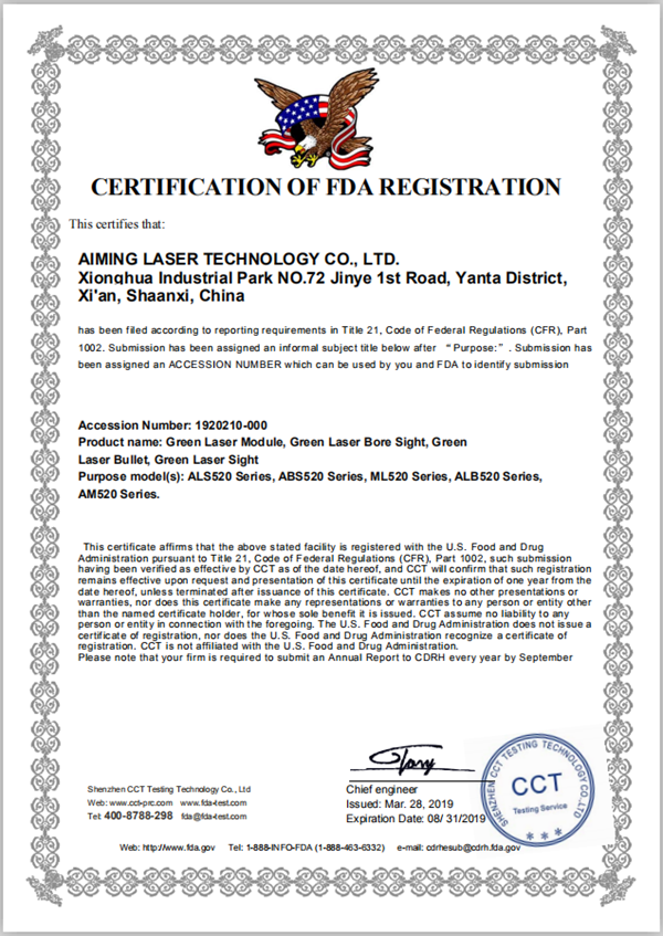 FDA绿光激光器美国FDA认证